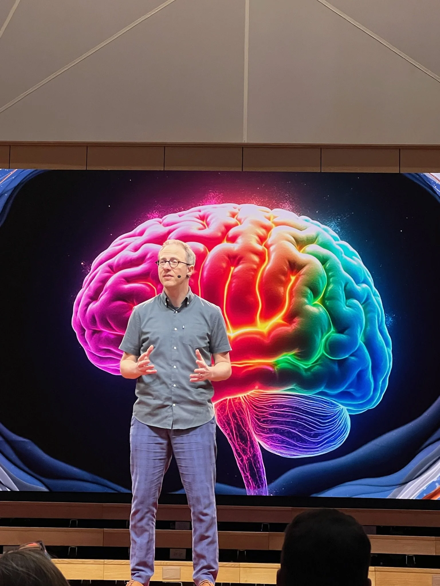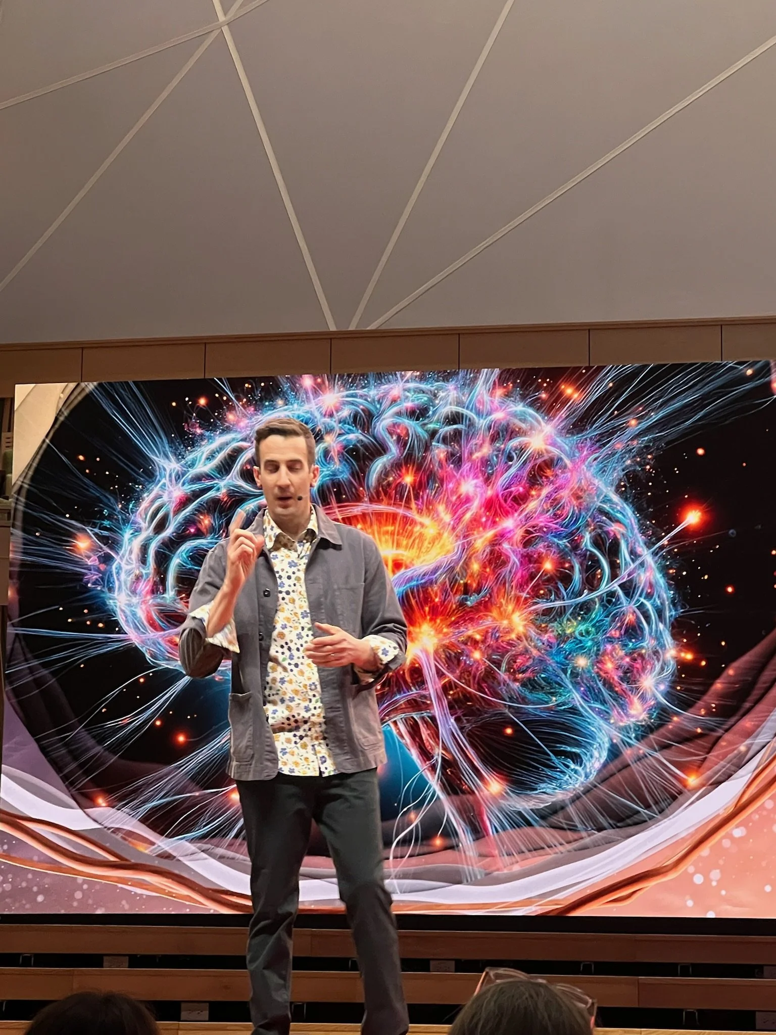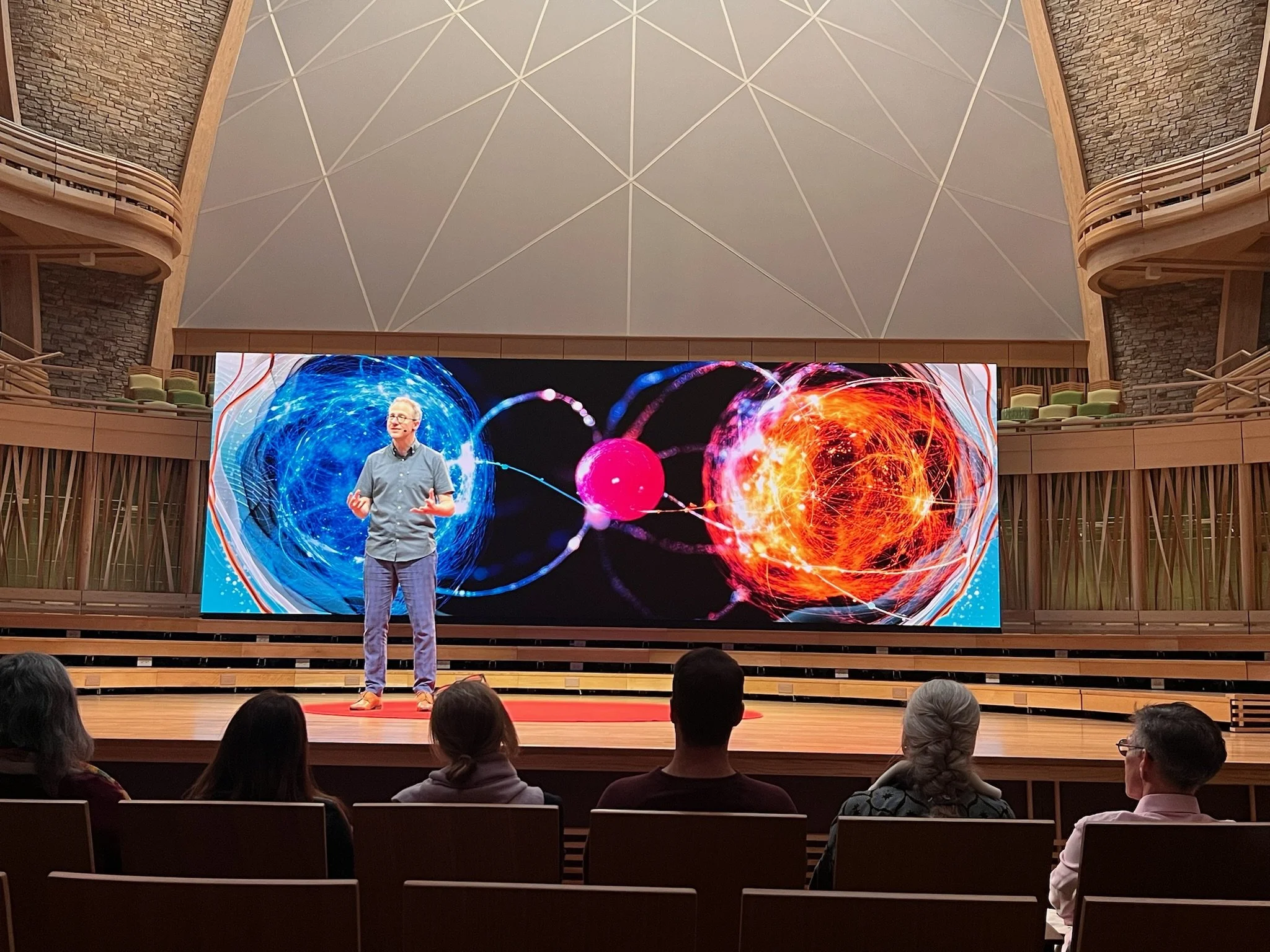 The visual representations on the screen integrated beautifully with the space itself, playing on sensibilities of light woods, subtle pastel colors, modern fixtures and parametric structural accents. From full screen imagery to content mortise frameworks…the animations ebbed and flowed between topics, connected the themes of Life and Mind, and provided a stunning backdrop for each presenter.